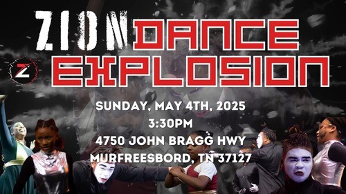 Zion Christian Ministries' Dance Ministry in conjunction with 4O1K Youth Ministry is hosting their 1st Dance Explosion on May 4th at 3:30 p.m. Don't just meet us there, beat us there to get yourself a great seat with a great view!