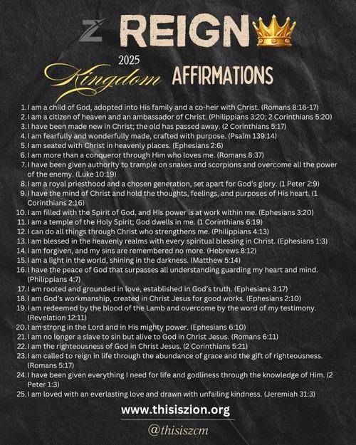 These 25 affirmations should be read through and repeated daily as we boldly walk throughout 2025. We will REIGN!
