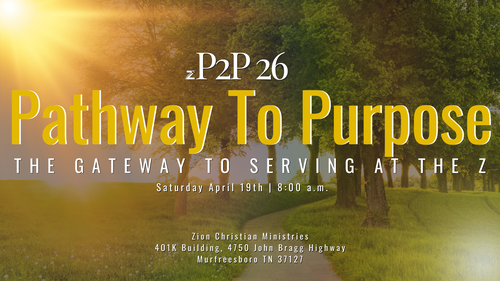 Pathway To Purpose, P2P 26, Zion's member orientation class, has been rescheduled for Saturday, April 19th at 8:00 a.m. Register here TODAY! If you previously registered for P2P 26 that originally scheduled for 3/15, you are still registered, no need for you to register again. If you previously registered and are unable to attend, please let the membership team know.
